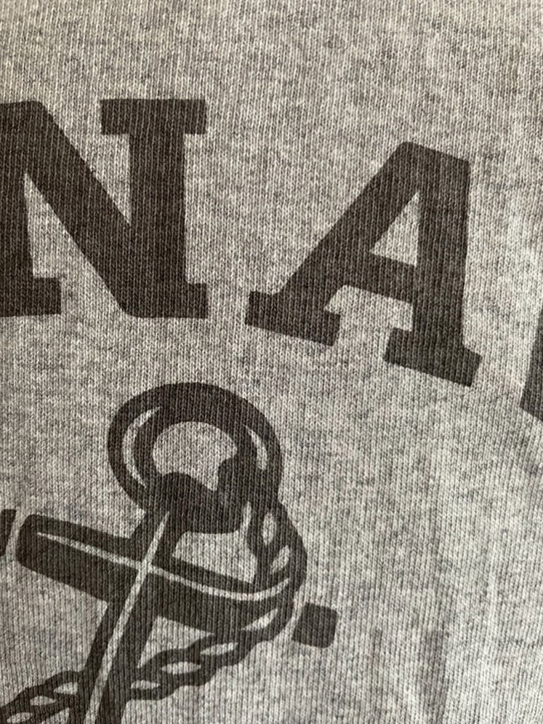 ・フロントのプリントはヴィンテージ感がでるよう濃色ボディにはラバープリント、淡色ボディには染込みプリントを施しております。多少のシワなどご理解下さい。