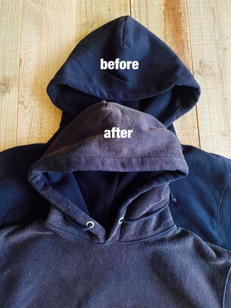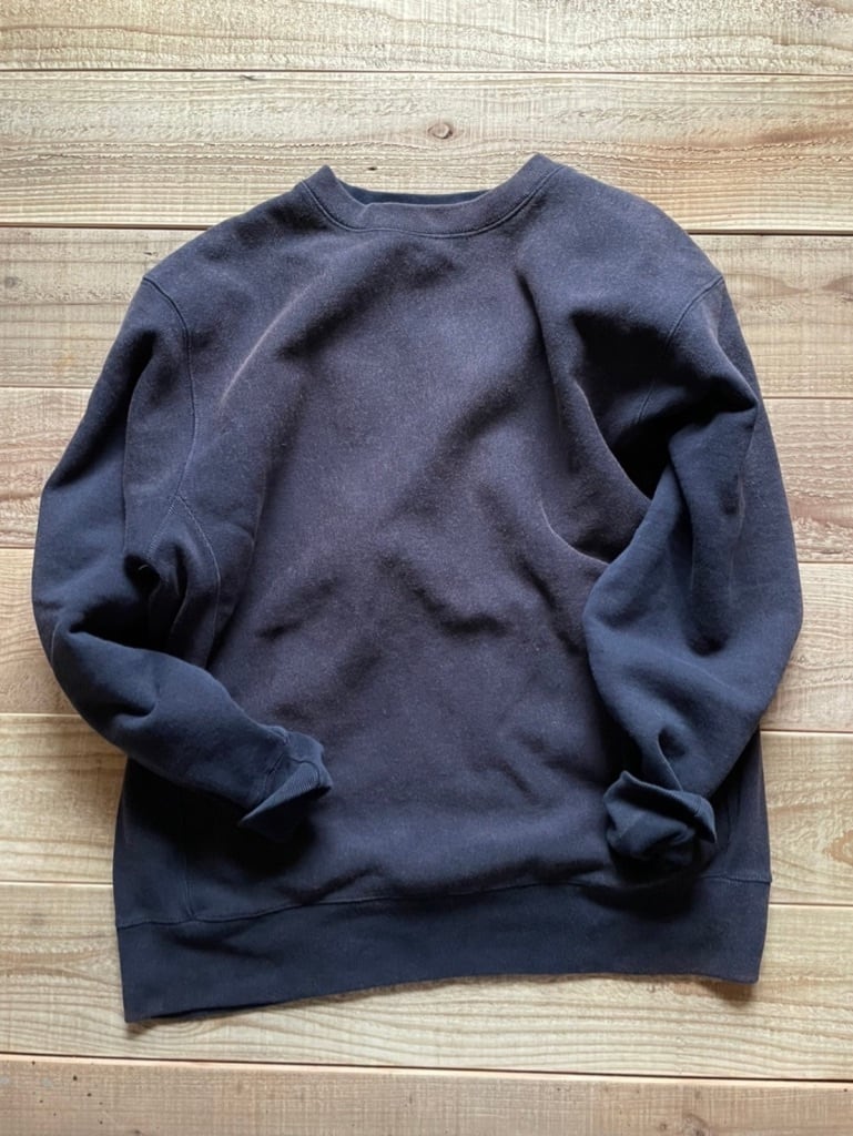 ムラ感のあるオープンエンド糸のスウエットを大量生産ではなく1点1点手作業で職人がヴィンテージ加工を施したスウエットは長年着用し続けた洋服さながらの色落ちでヴィンテージ感漂う仕上がりになっています。