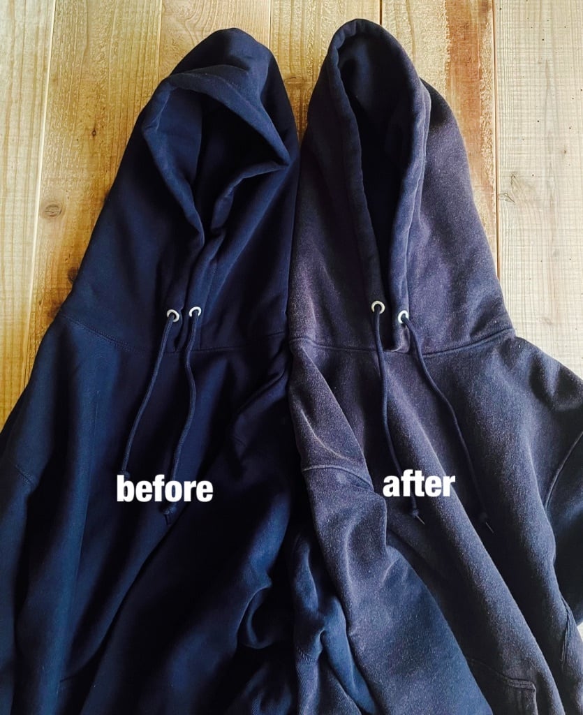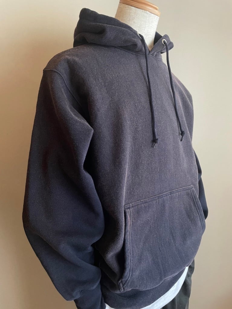 ムラ感のあるオープンエンド糸のスウエットを大量生産ではなく1点1点手作業で職人がヴィンテージ加工を施したスウエットは長年着用し続けた洋服さながらの色落ちでヴィンテージ感漂う仕上がりになっています。